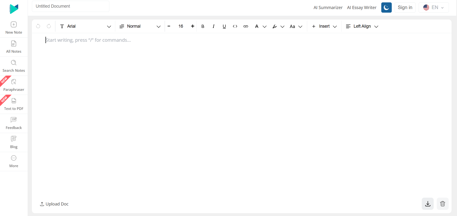 - Different Formatting Options: It offers a wide range of formatting options, including headings, text highlighting, numbered lists, bold, bullet points, and different font families.