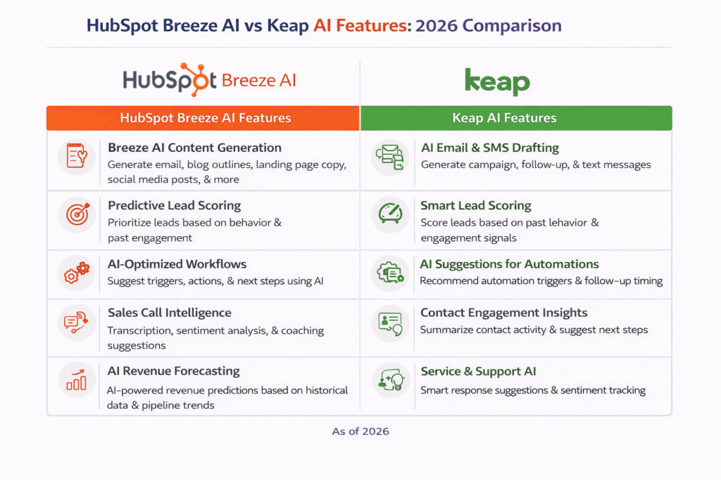 However, in 2026, HubSpot is positioned as a scalable customer platform for growing and mid-sized businesses, while Keap focuses on small businesses that need straightforward automation without enterprise-level complexity.