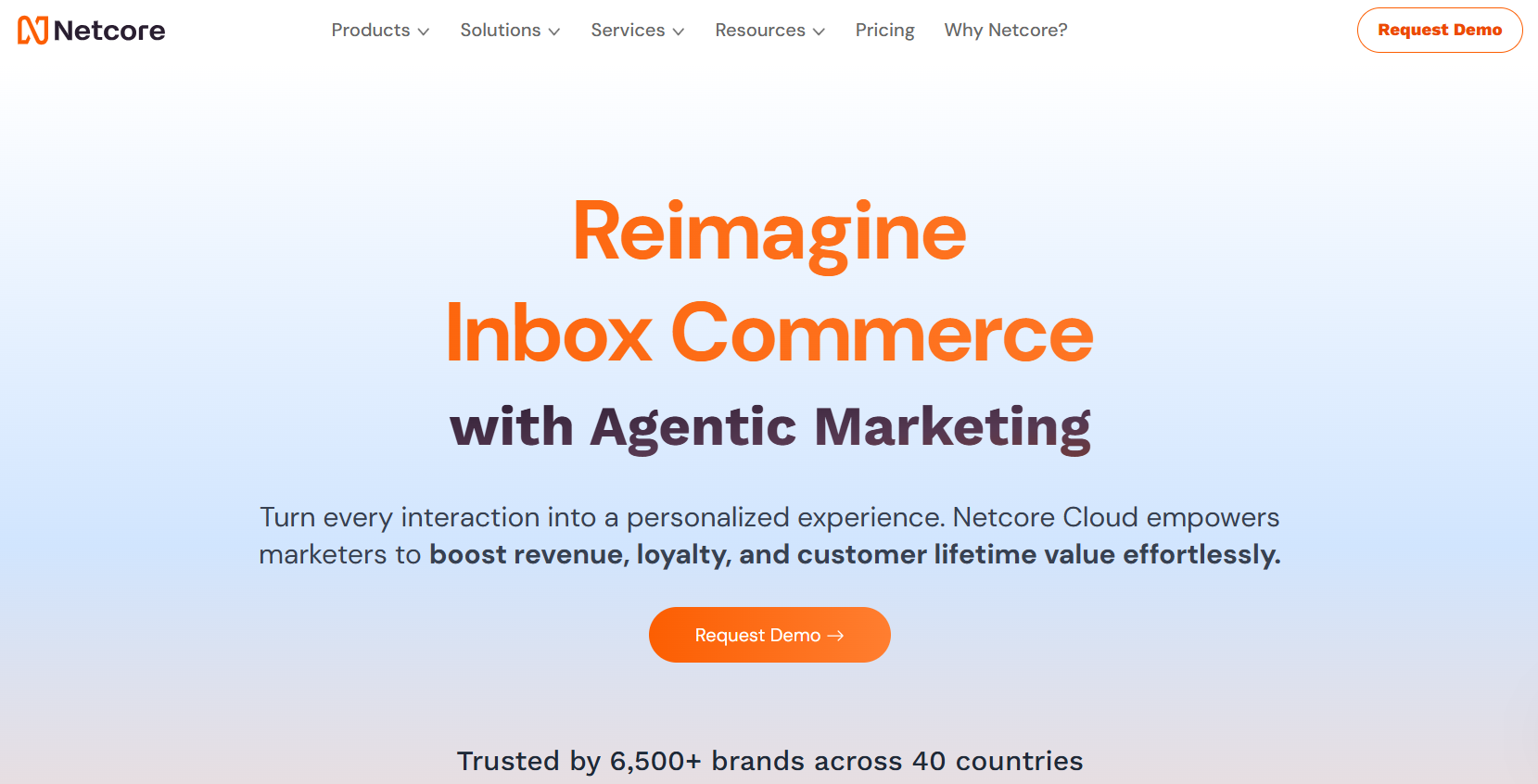 From Inbox Commerce to WhatsApp personalization and real-time engagement, Netcore enables brands to convert every touchpoint into a revenue opportunity — with superior deliverability, faster go-lives, and lower total cost of ownership.