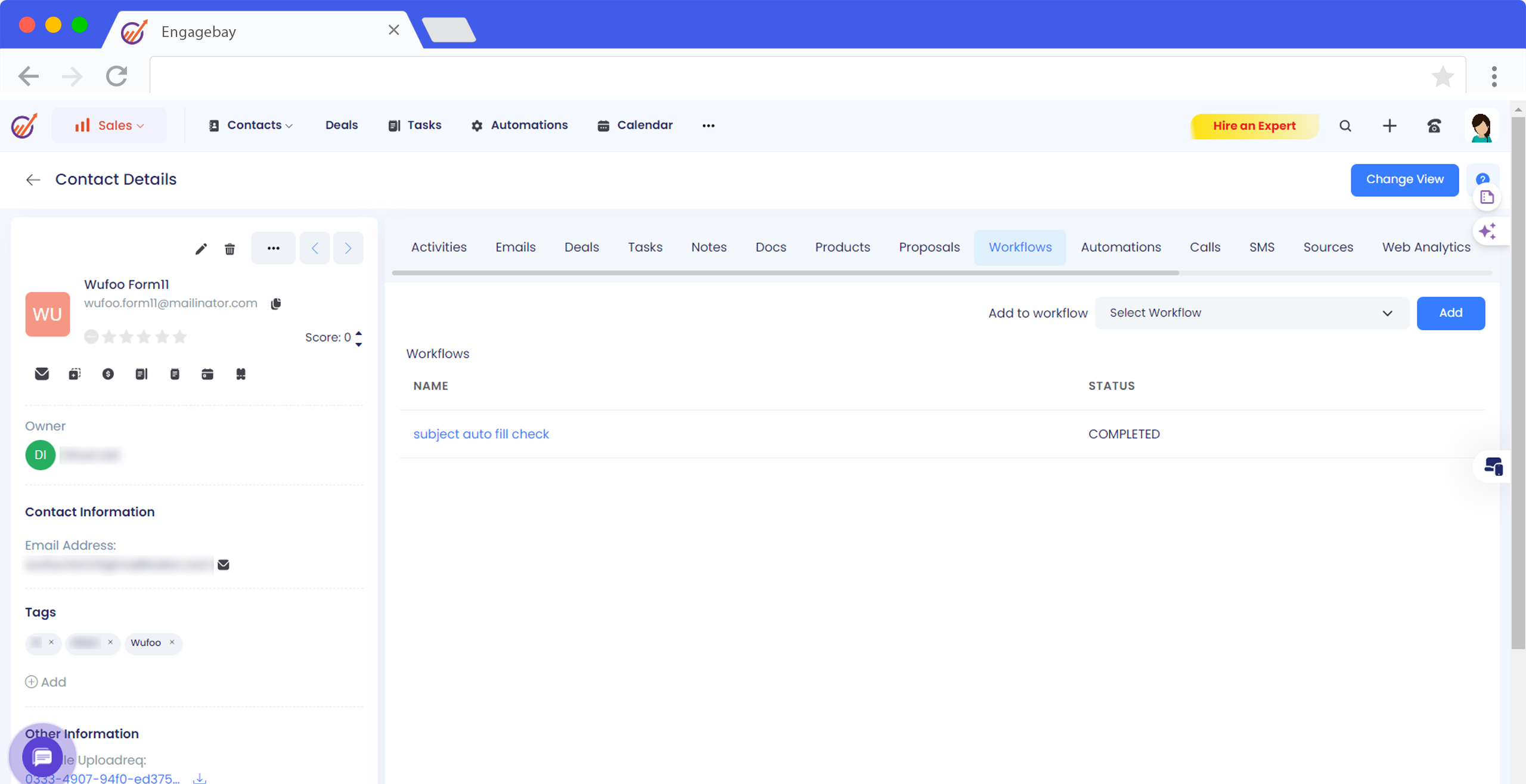 Apply tags based on form submissions for automatic, targeted marketing campaigns, leveraging EngageBay's automation tools for efficient contact engagement.