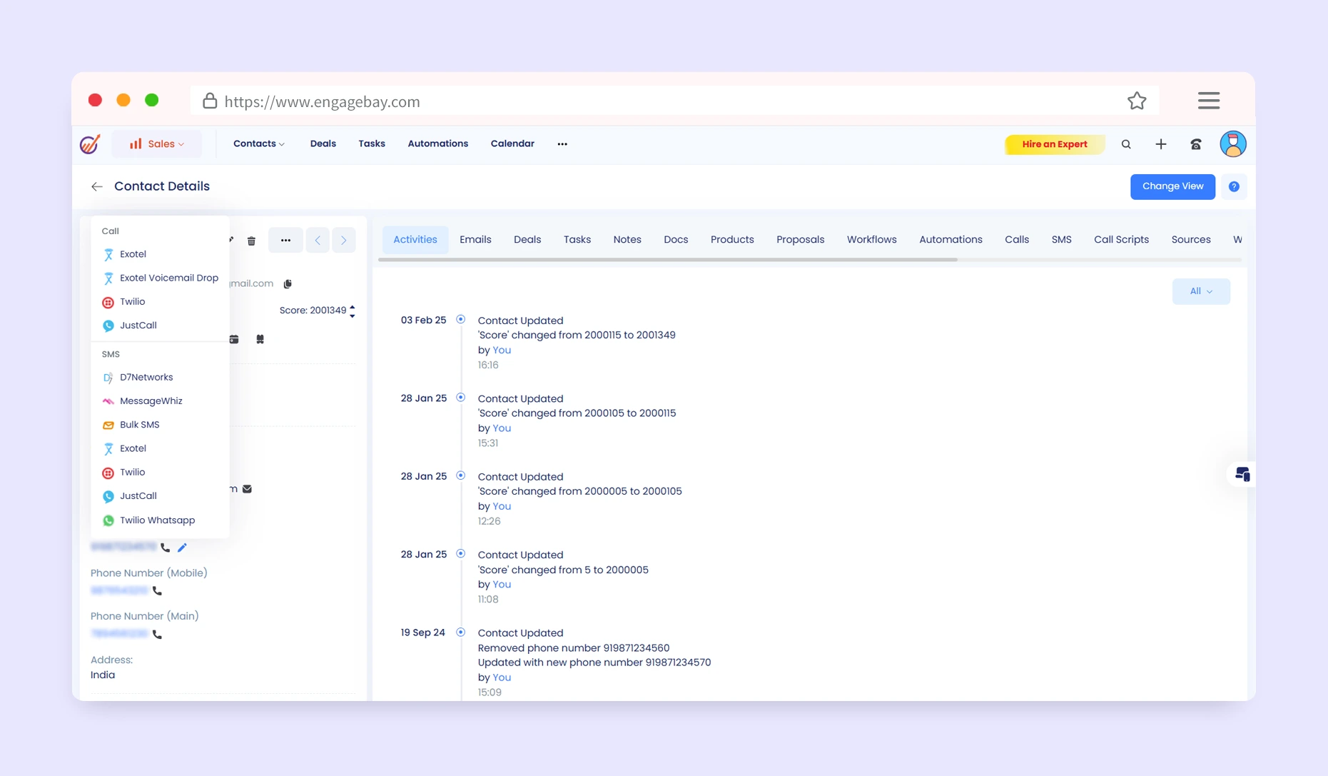 Sending/receiving SMS in bulk was never easier. By connecting BulkSMS and EngageBay, you can send/receive highly targeted and customized text messages in bulk. Create and deploy powerful SMS campaigns to communicate and engage with your customers/prospects better.