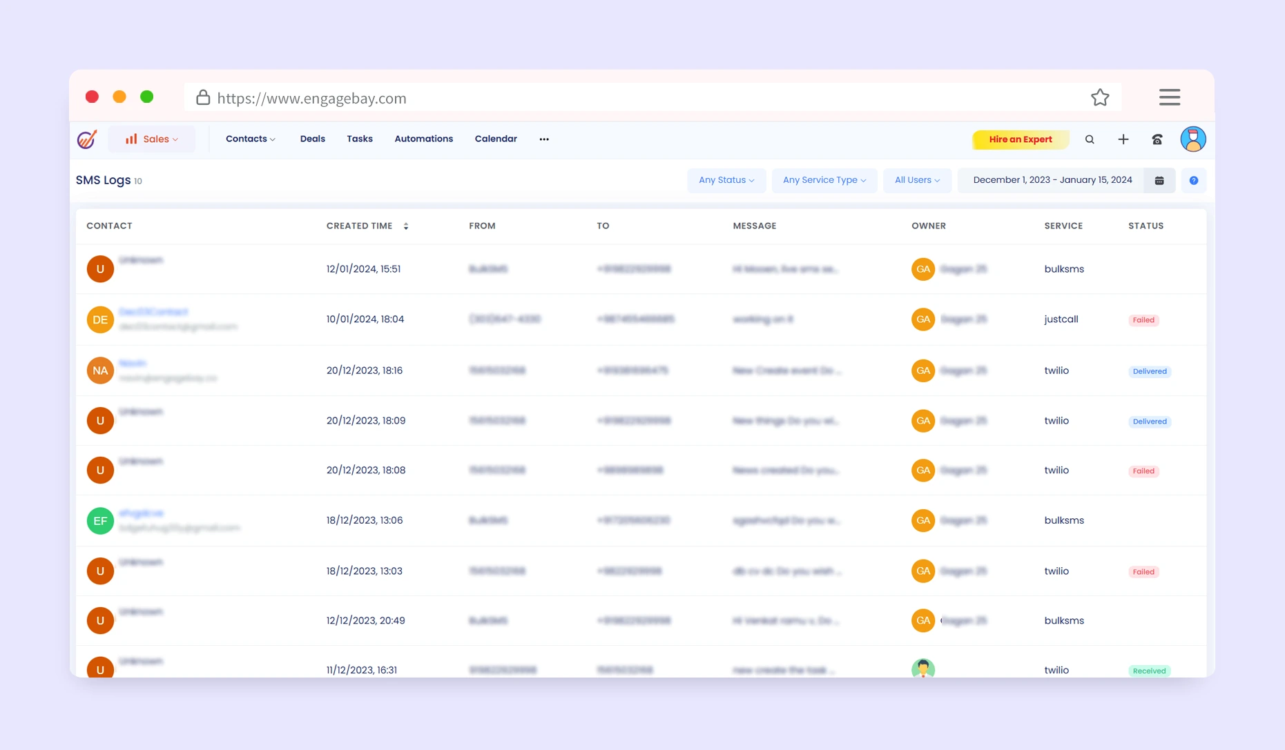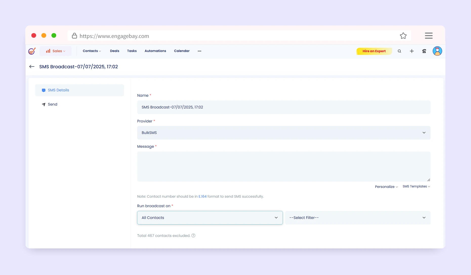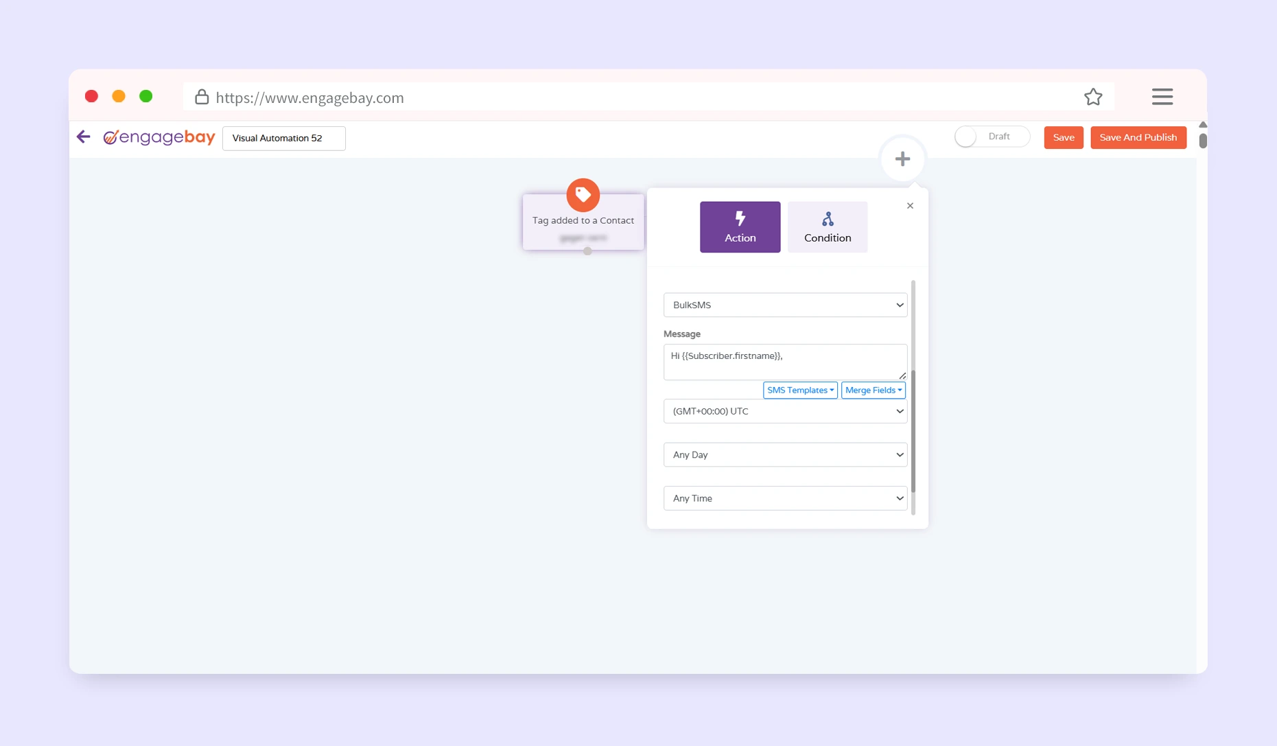 Record and trigger automations based on SMS delivery status from the EngageBay CRM contact record with the EngageBay - BulkSMS integration.
