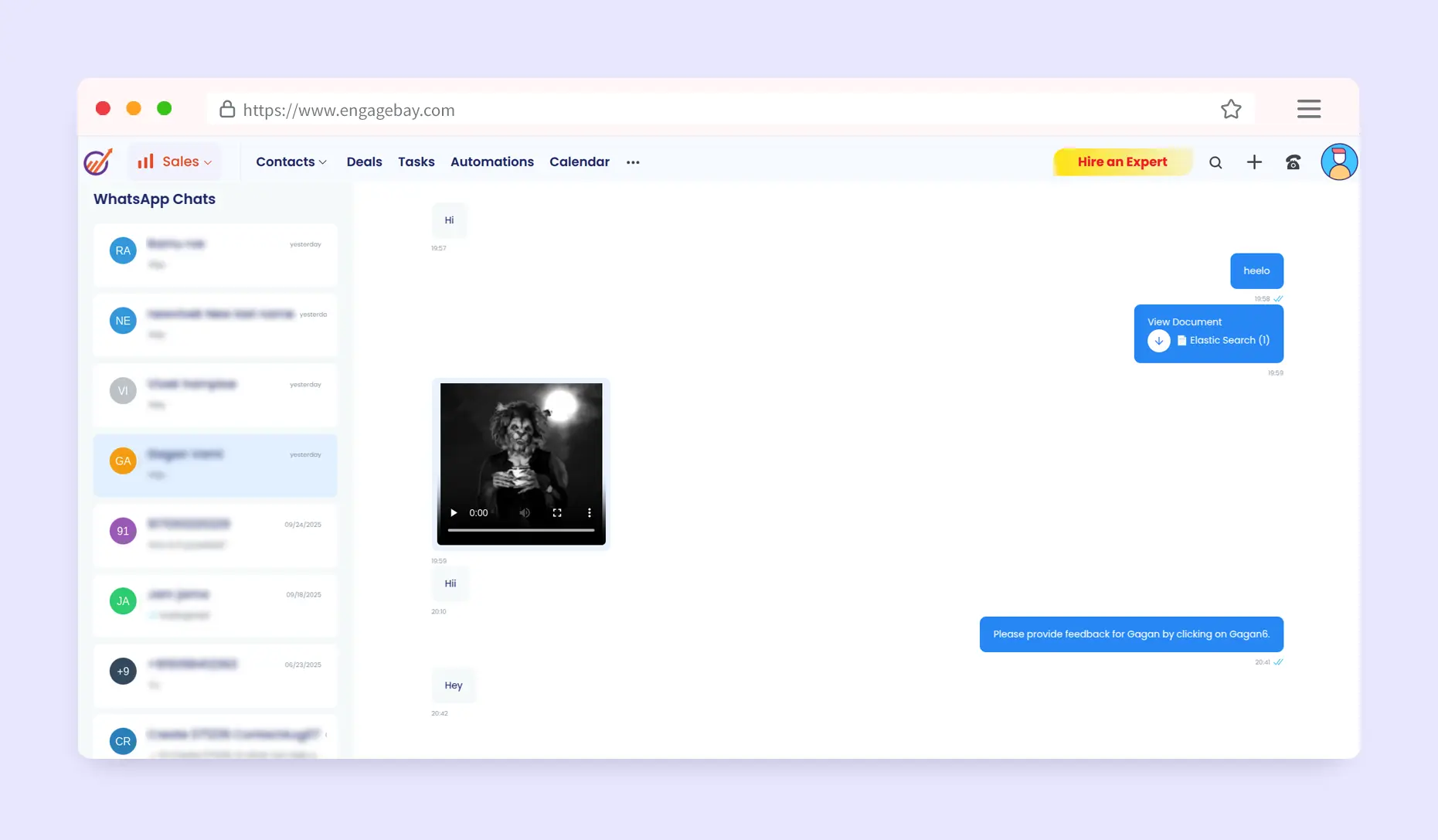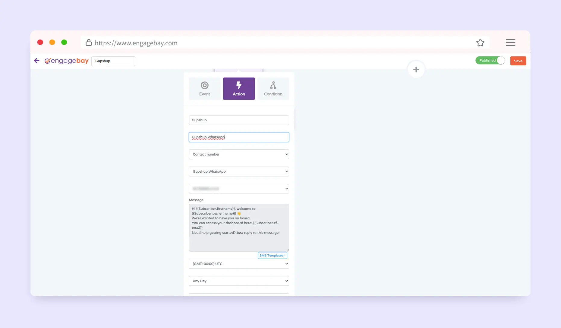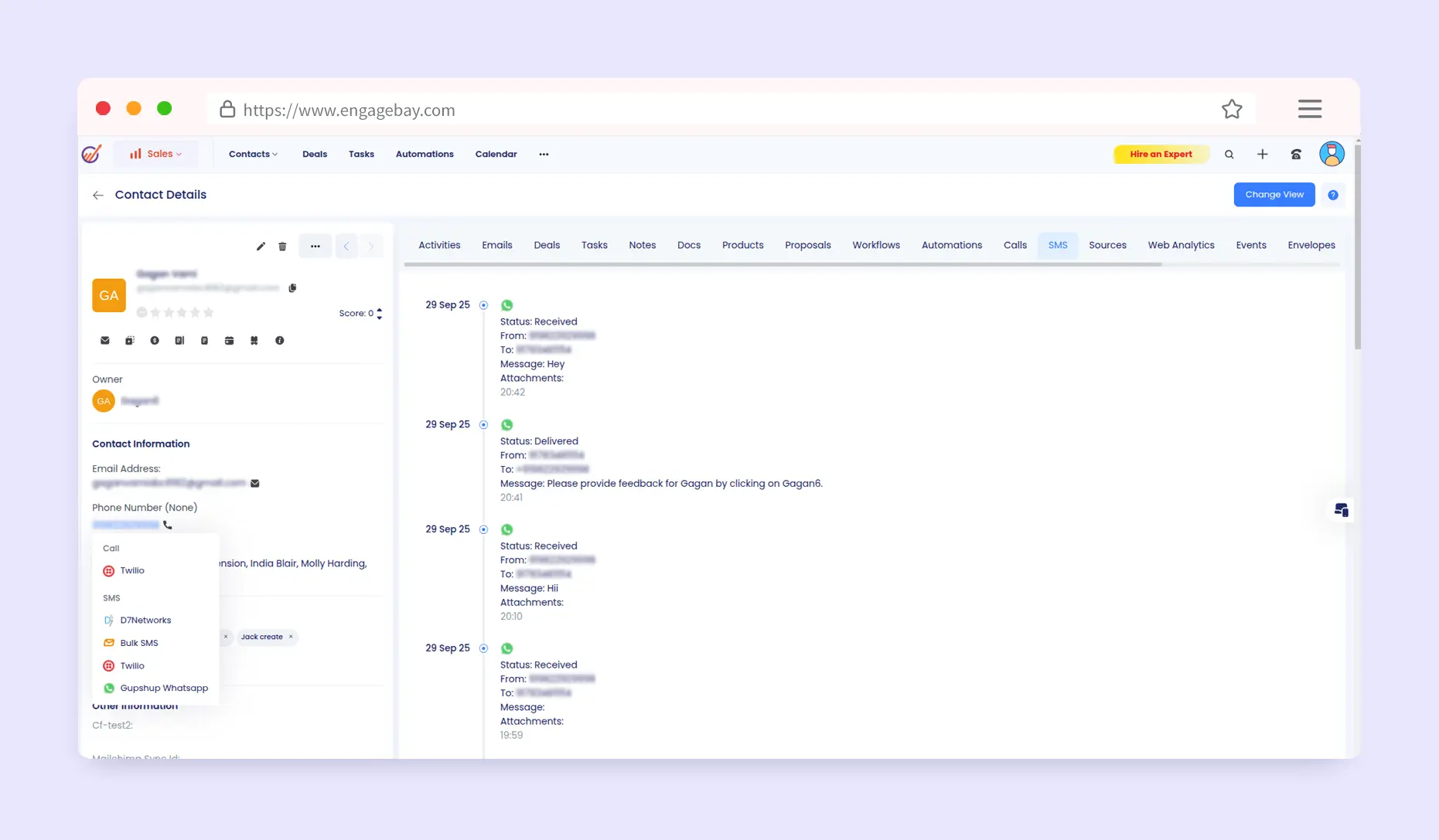 The EngageBay–Gupshup WhatsApp integration powers real-time, two-way messaging directly inside your CRM. Every text—whether a bulk blast, automated campaign, or live customer chat—syncs into EngageBay for complete visibility. Switch from personal replies to mass broadcasts in seconds, without leaving your dashboard.