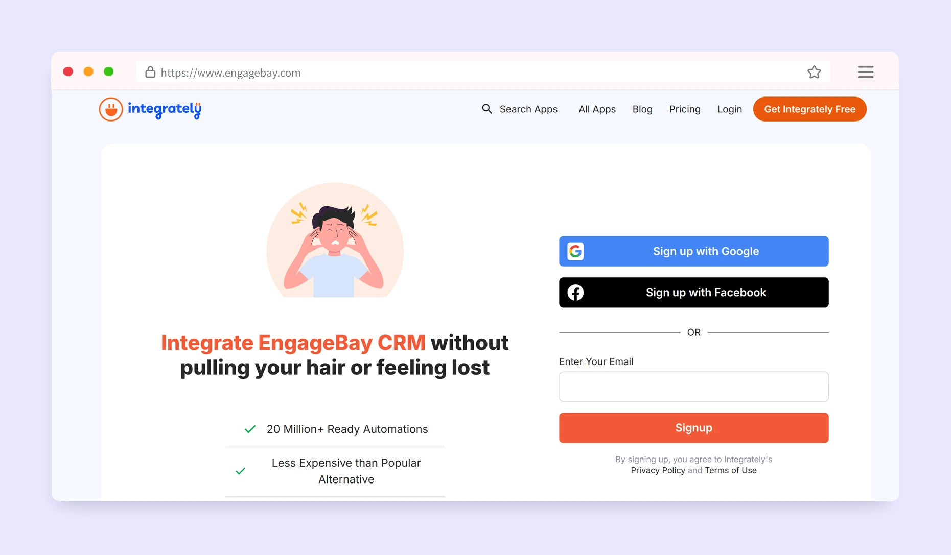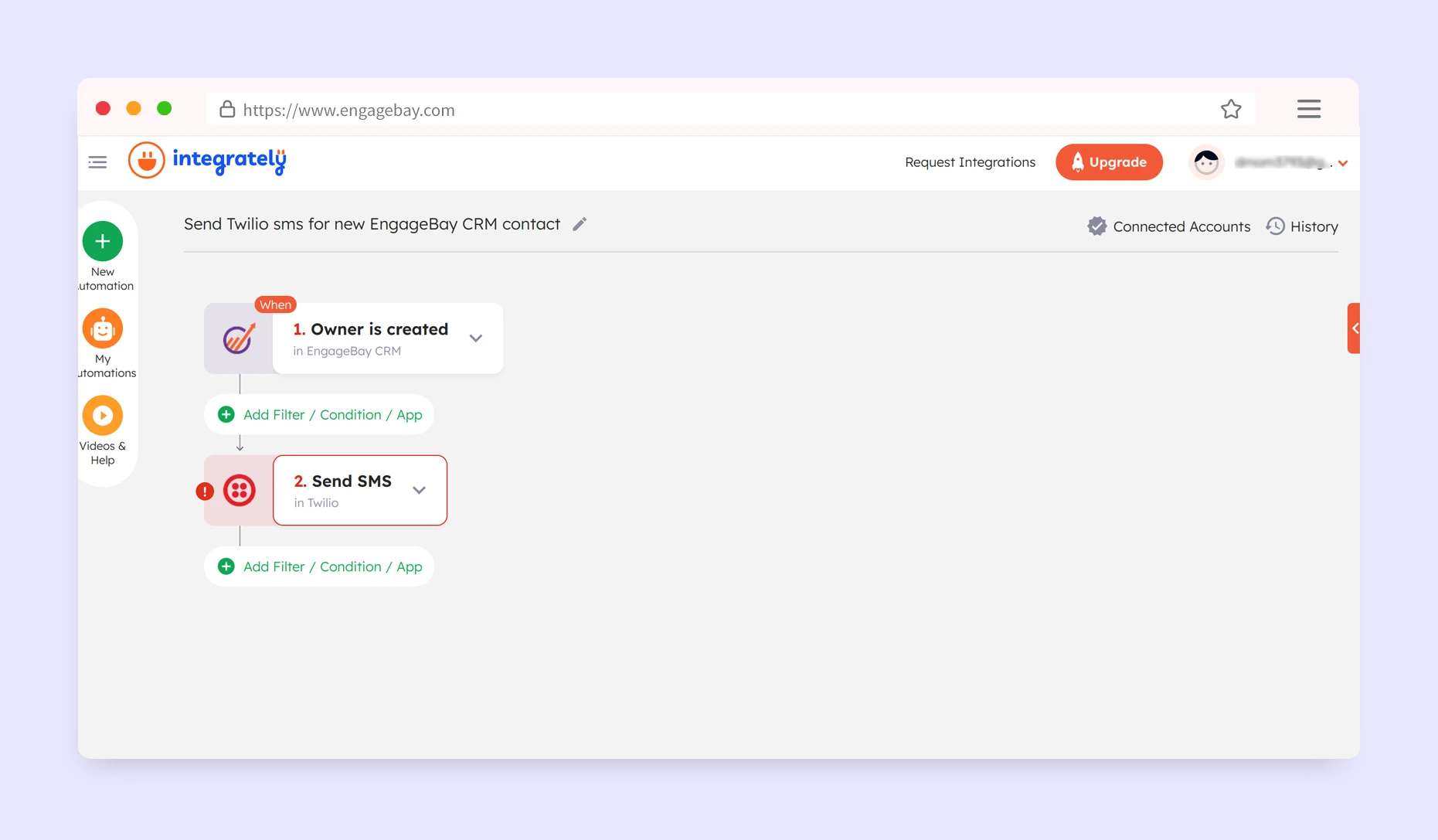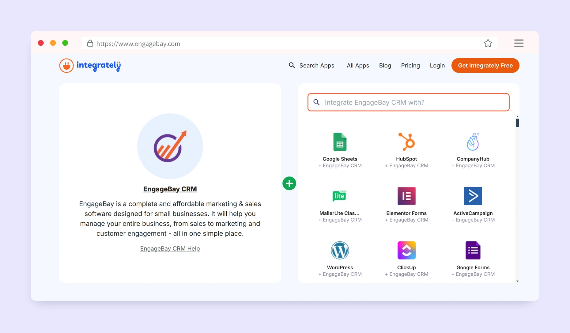 With the EngageBay - Integrately integration, you can create nearly hundreds of integrations that mirror your usual workflows. Connect EngageBay to hundreds of different apps through Integrately in just a few clicks. Share information between your apps without actually having to do it, thereby saving your valuable time to focus on more important tasks that actually require your attention and time.