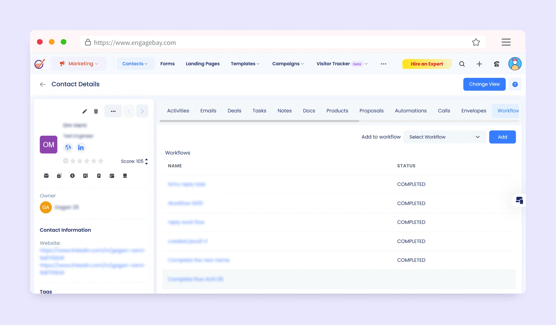 Automate follow-ups and lead nurturing by integrating LinkedIn interactions with EngageBay CRM, saving time and enhancing productivity.