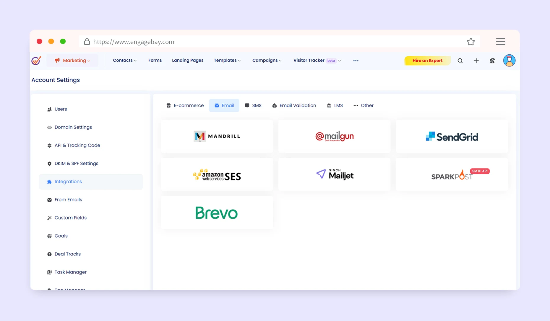 Built with developers in mind, you can ensure faster, more secure deliverability, gain actionable insights, automate projects, contacts, and opportunities for email events. By connecting Mailgun and EngageBay, you can automate contacts and leads for email events like open and click events, failed delivery events, new log data, and more.