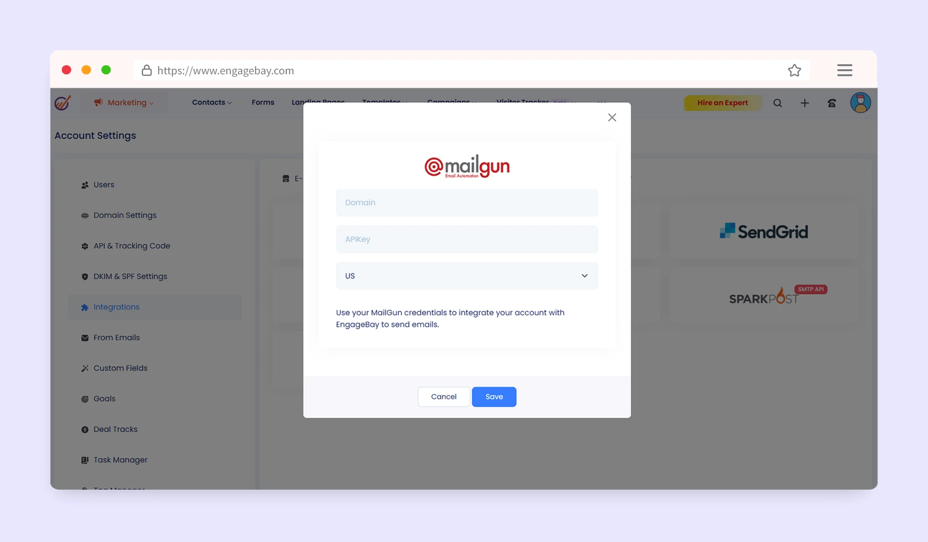 Optimize clicks and open rates while serving exactly what your customers want and achieve maximum engagement with the EngageBay-Mailgun integration.
