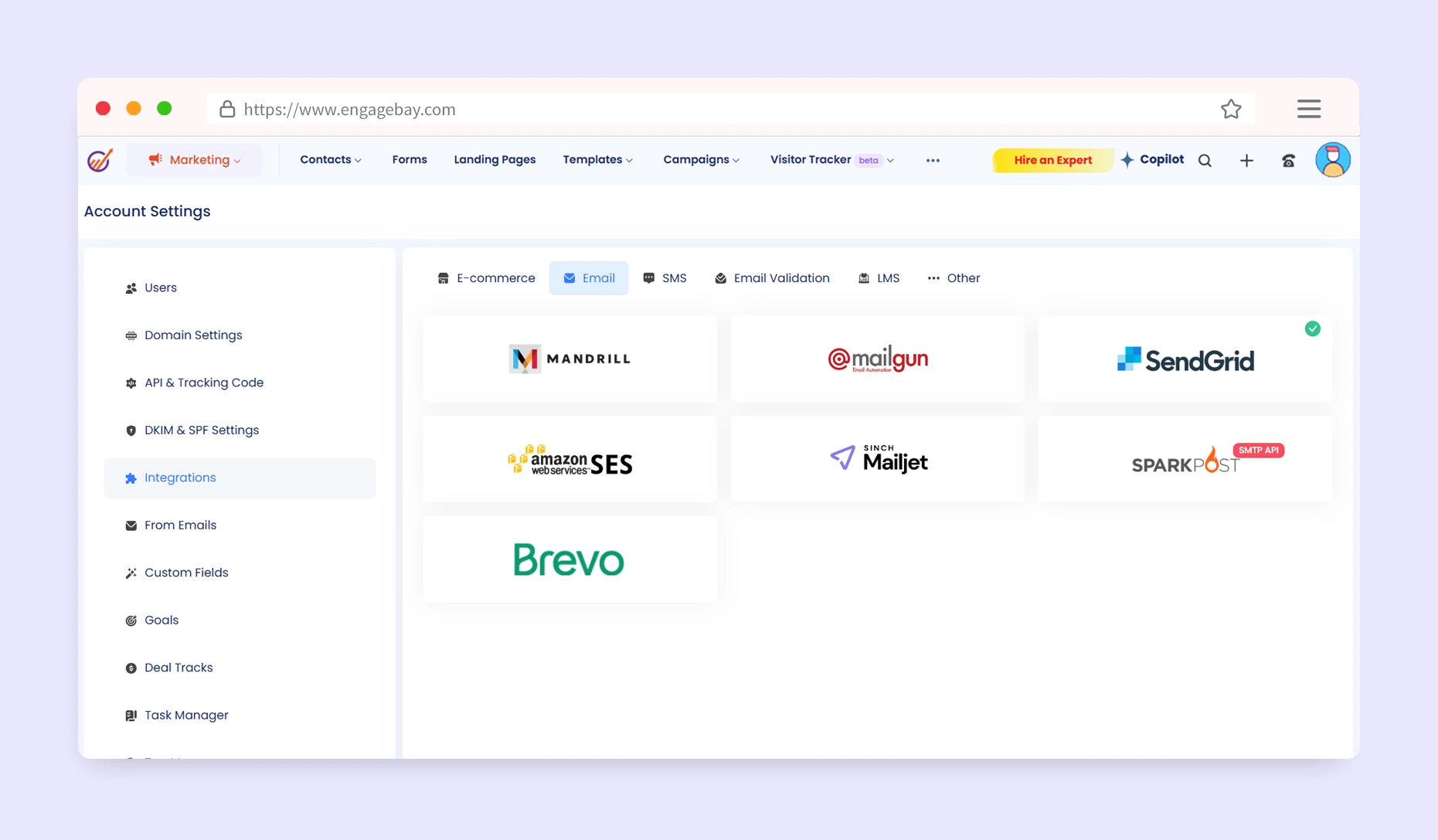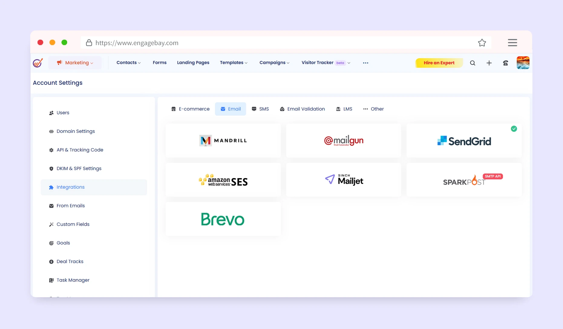 Be assured of creating and delivering exceptional email campaigns with the EngageBay - SendGrid integration. EngageBay offers powerful marketing automation features, among other things. With the SendGrid integration, you can be assured of reliable deliverability, scalability and also have access to real-time analytics.