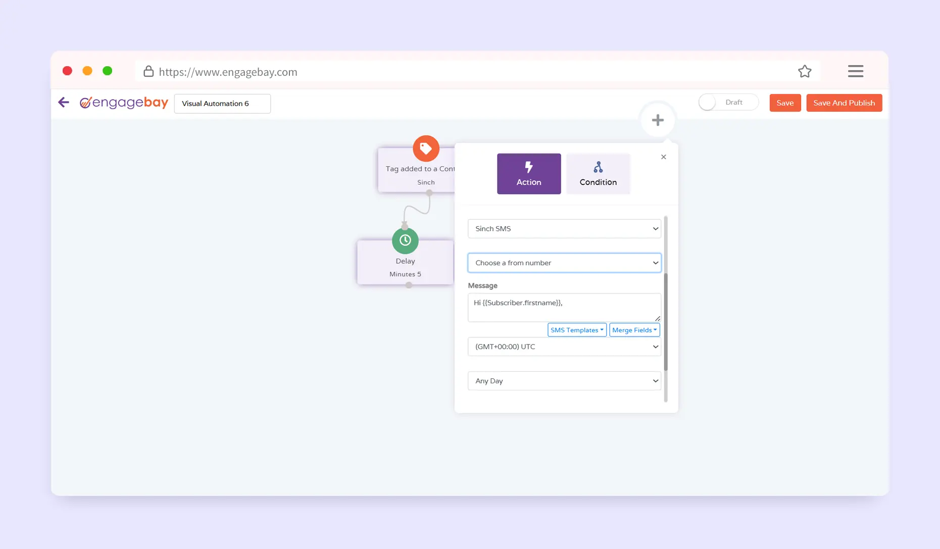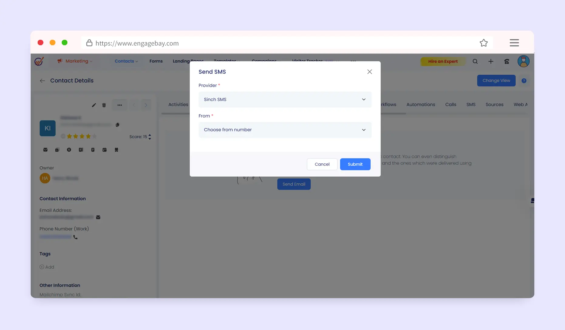 Streamline customer interactions with the EngageBay-Sinch integration and engage customers with personalized conversations via SMS text messaging. Whether you’re looking to create seamless marketing automation flows, provide world-class customer care, you can do it all here.