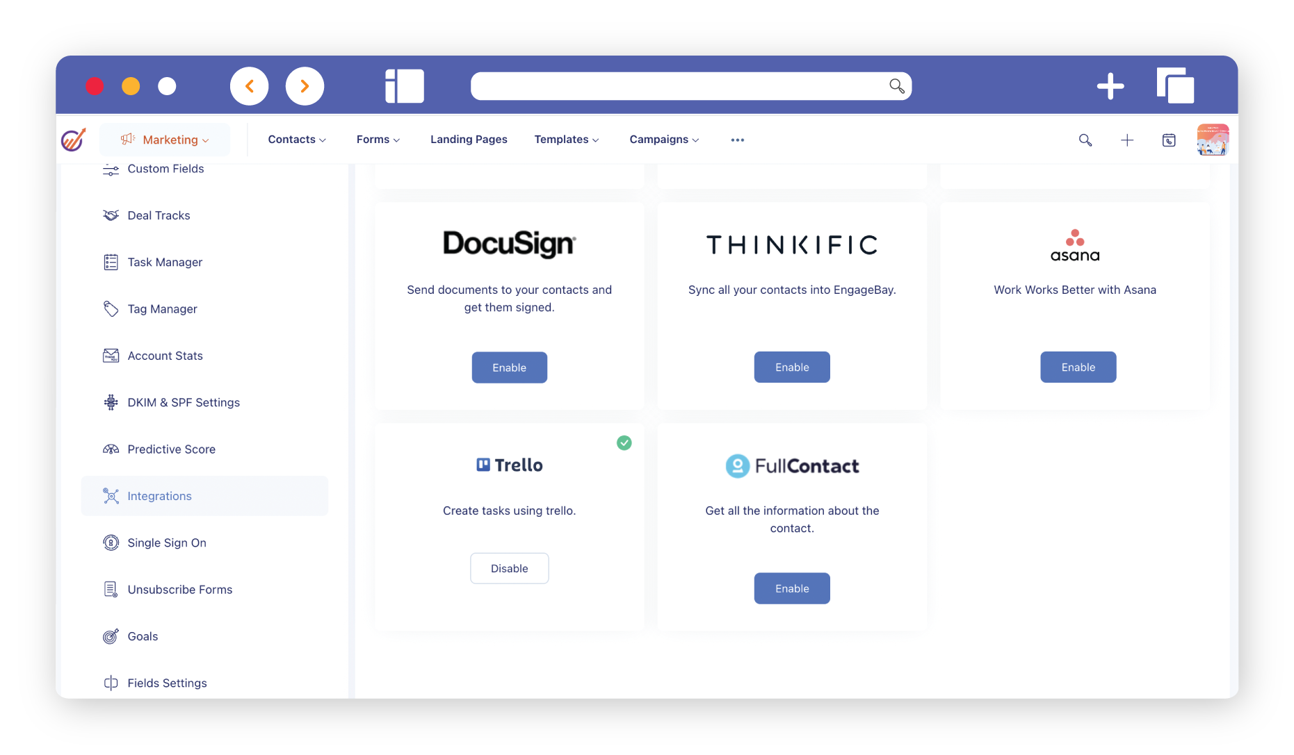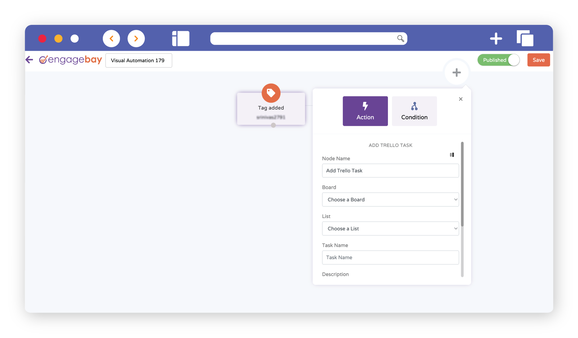 Trello organizes your to-do list to keep projects on task. Trello saves you time by helping prioritize what matters most to your team. With the EngageBay - Trello integration, users can create Cards, view Boards, Lists, add Description, and Due Dates, all in a rich and visually appealing format.